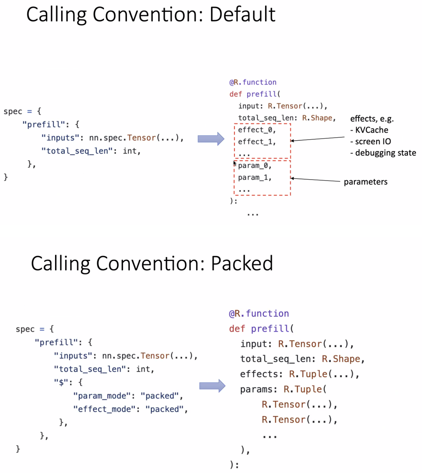 注意:由于 TIR 函数调用采用目标传递风格,每个函数调用的参数会如下所示: